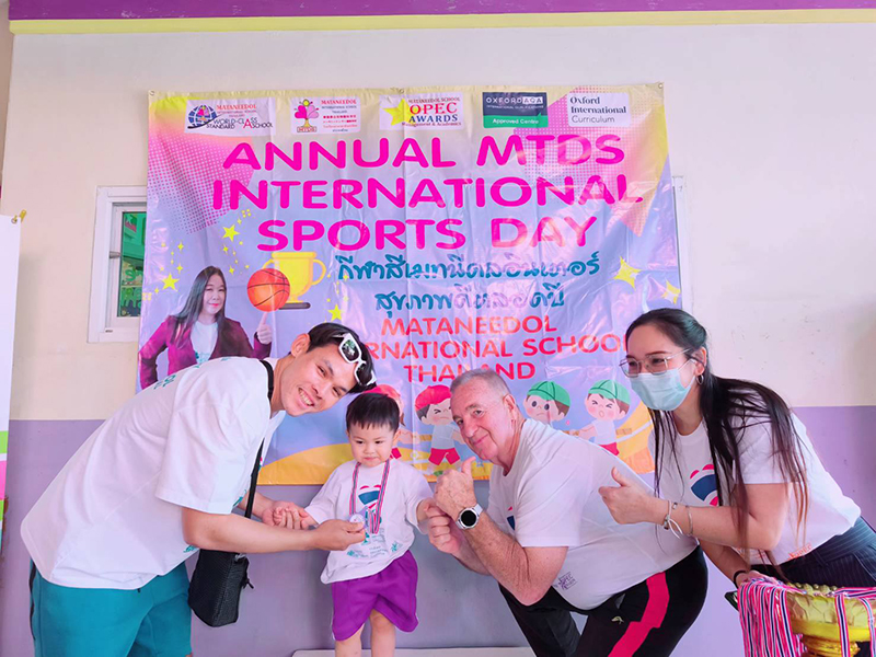 Dr.Oratai Santimataneedol, Principal Fon and Teacher Steve, Head of Foreign Teachers honoured our winning athletes by presenting trophies and medals to students. All our children enjoyed Mataneedol's18th Annual International sports day 2025.