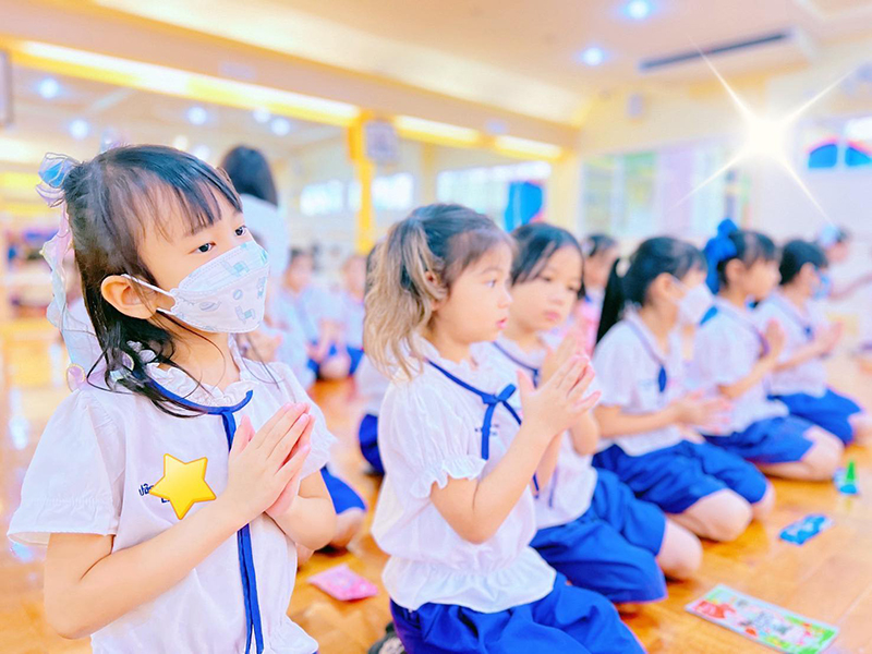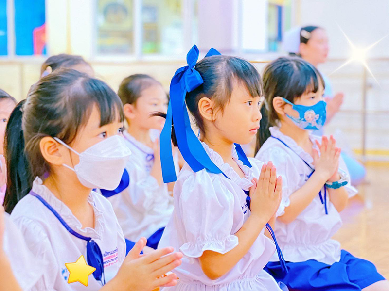 ท่านผอ.ฝน ฝึกฝนนักเรียนทุกระดับชั้น เป็นแบบอย่างที่ดี  มีจิตใจงดงามอยู่เสมอ  โดยการ  ฝึกการใส่บาตร ถือเป็นการสร้างบุญบารมีสูงสุดและยิ่งใหญ่ โดยมีคุณครูต่างชาติ คุณครูไทย ร่วมใส่บาตรกับนักเรียนในทุกสัปดาห์อย่างสม่ำเสมอ เป็นผู้มีคุณธรรม พี่พร้อมเป็นพลโลกสากลที่มีกาย วาจา และใจที่ดีเยี่ยม