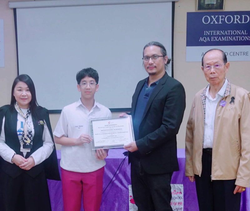 The training course, titled "Understanding the Future Through AI and Blockchain Technology," was held at the PDCA Meeting Room, 2nd Floor, Mataneedol International School, Khon Kaen Province.