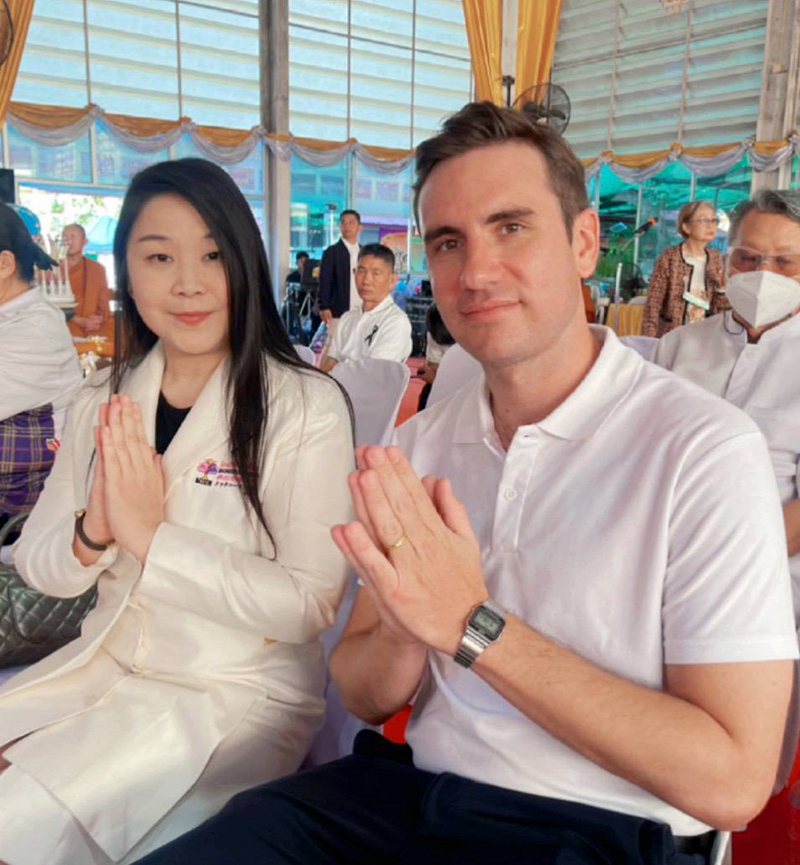 ท่านผอ.ฝน ผู้อำนวยการโรงเรียนนานาชาติเมทนีดล ร่วมทำบุญพร้อมโรงทานมหาเศรษฐีชุดมีดและเขียงไม้เซตใหญ่ พร้อมคุณครูไมค์ ธุรการ แม่บ้าน แม่ครัว และพนักงานขับรถ เข้าร่วมงานพิธี