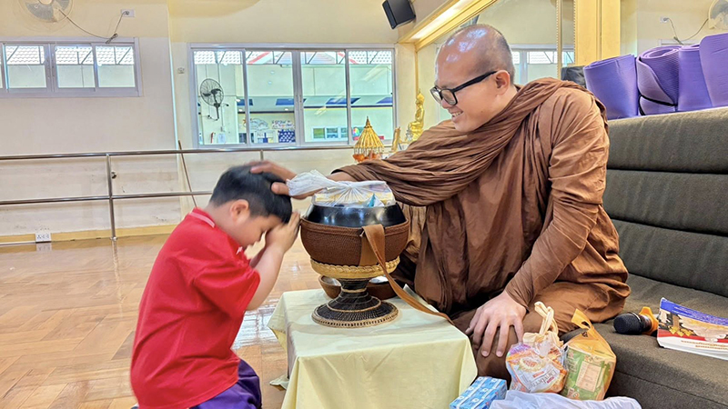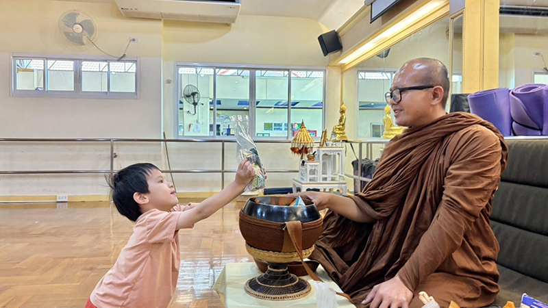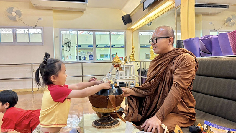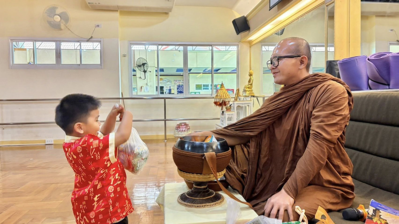 ท่านผอ.ฝน ฝึกฝนนักเรียนทุกระดับชั้น เป็นแบบอย่างที่ดี  มีจิตใจงดงามอยู่เสมอ  โดยการ  ฝึกการใส่บาตร ถือเป็นการสร้างบุญบารมีสูงสุดและยิ่งใหญ่ โดยมีคุณครูต่างชาติ คุณครูไทย ร่วมใส่บาตรกับนักเรียนในทุกสัปดาห์อย่างสม่ำเสมอ เป็นผู้มีคุณธรรม พี่พร้อมเป็นพลโลกสากลที่มีกาย วาจา และใจที่ดีเยี่ยม