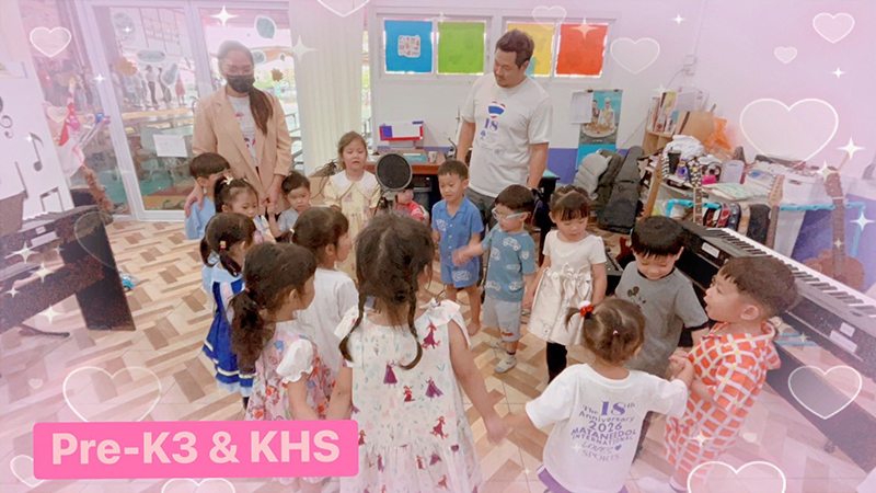 ผู้บริหาร คุณครูต่างชาติ ไทย เเละพนักงานพร้อมต้อนรับครอบครัวเมทนีดลทุกห้องเรียน